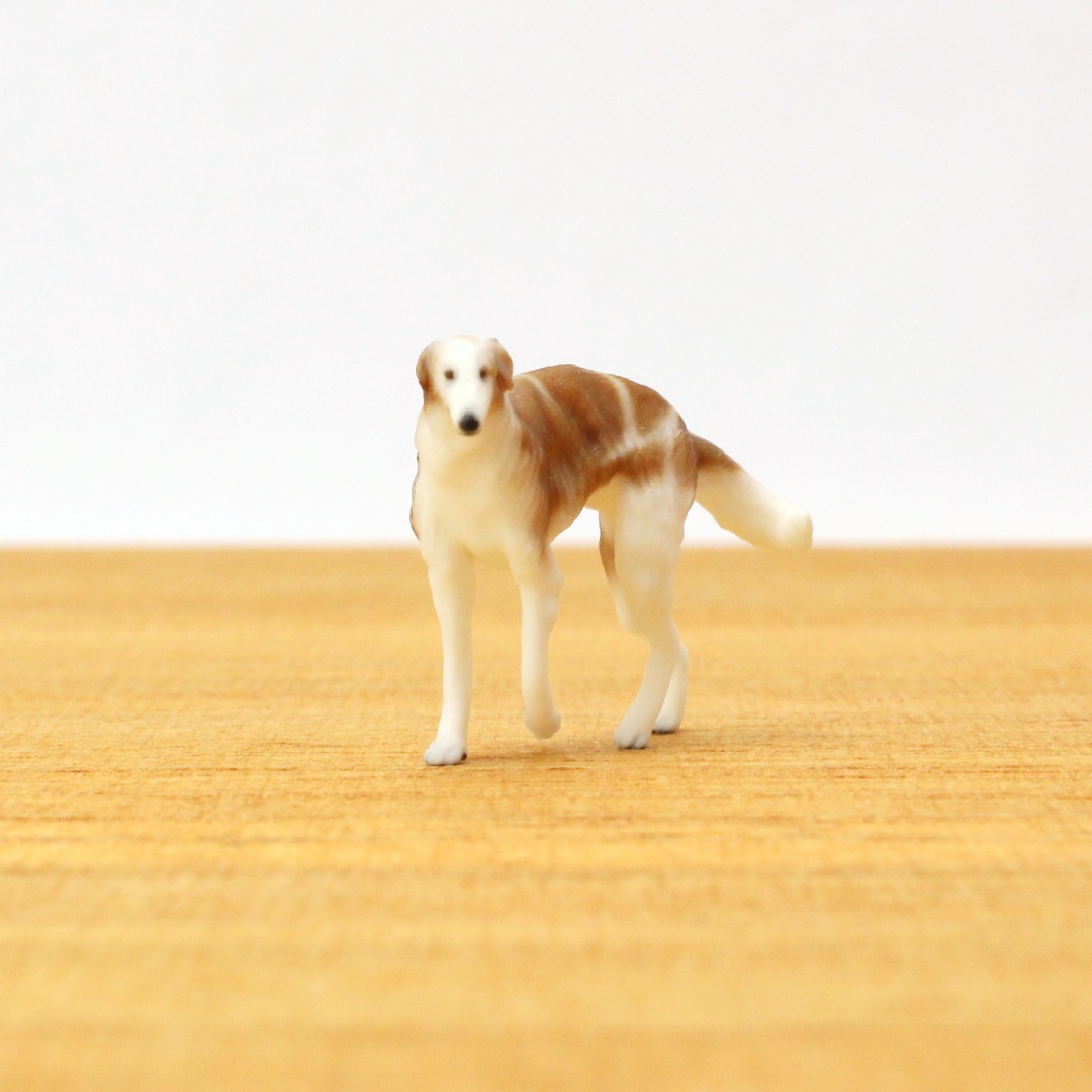 そんなボルゾイが持つ雰囲気を、動きのあるポーズと毛並みで表現しました。