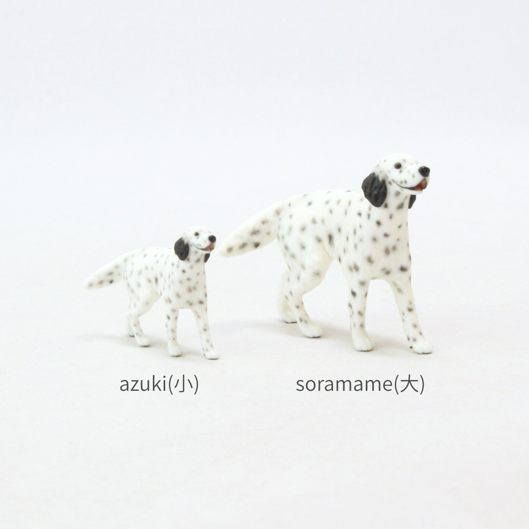 セッターといえばイングリッシュ・セターを指す程代表的な犬種で、イギリスでは非常に古い歴史を持っています。 しかし、日本での飼育頭数はJKCによると10頭程度と言われているくらい珍しいのです。元々は狩猟犬ですが、 家庭犬として美しさも高められ、とても魅力的!動きのあるアクティブなポーズを採用しました。