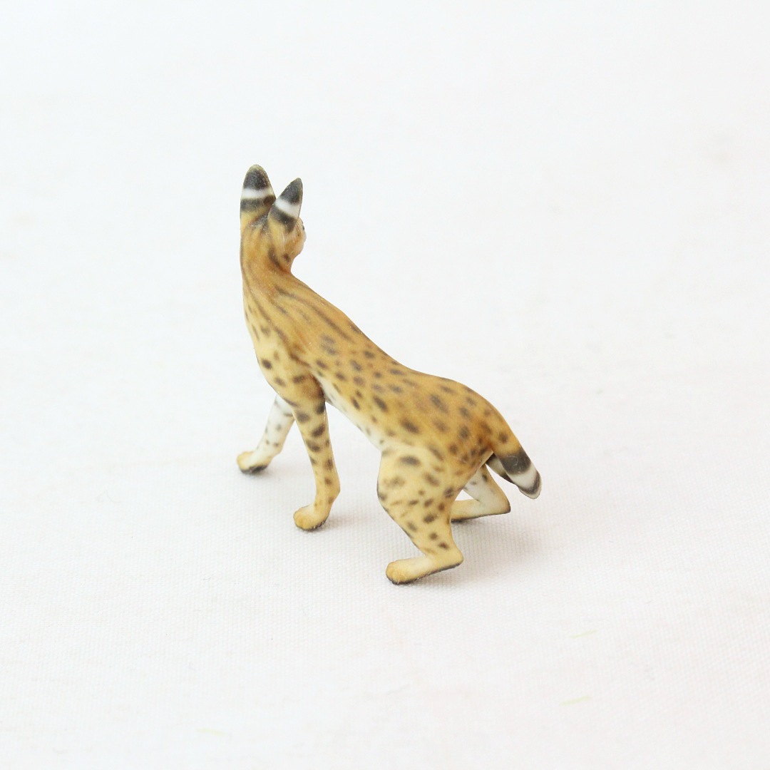 サーバル特有のスレンダーなボディラインや、美しいスポット模様を精巧に表現しました。