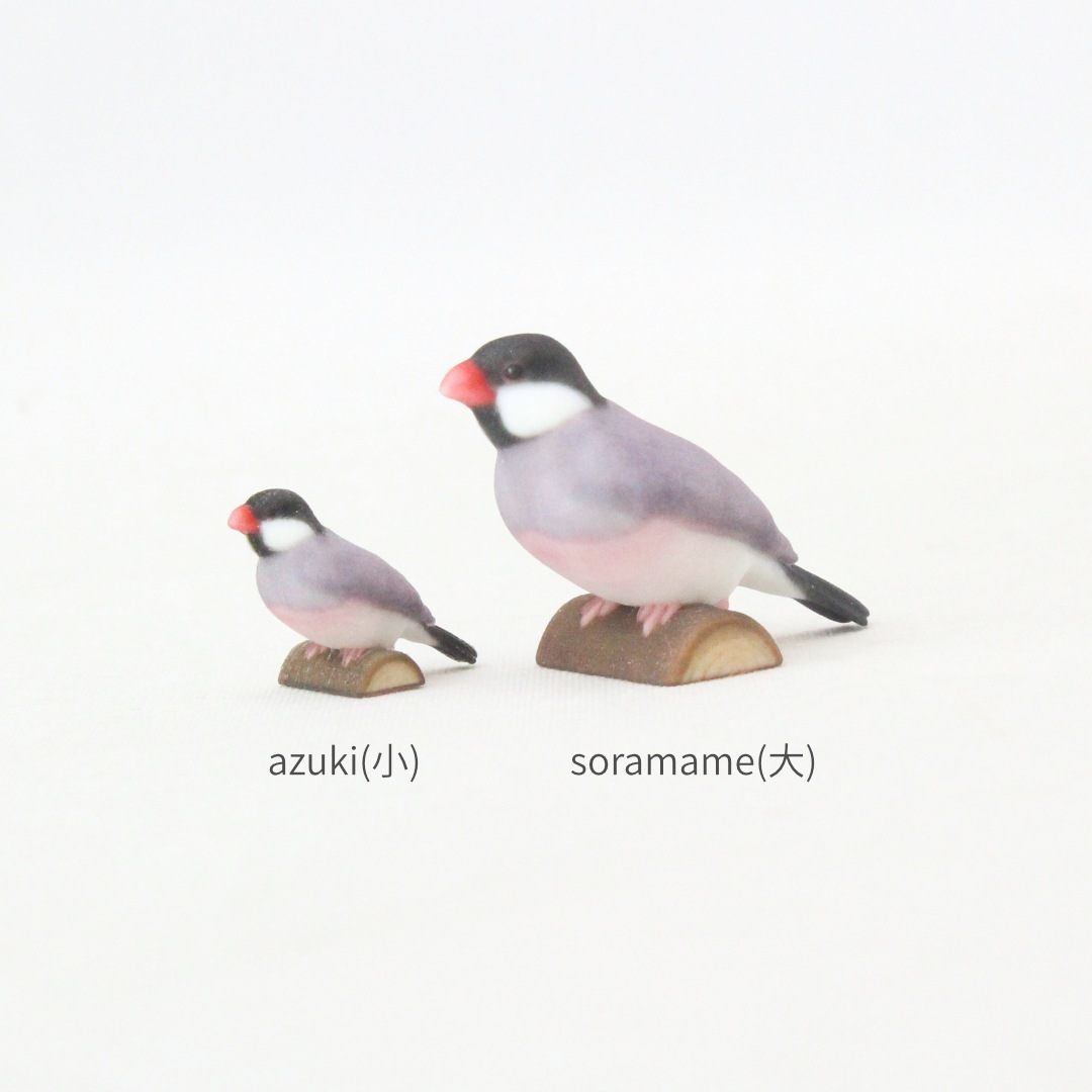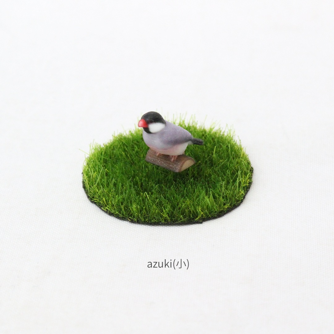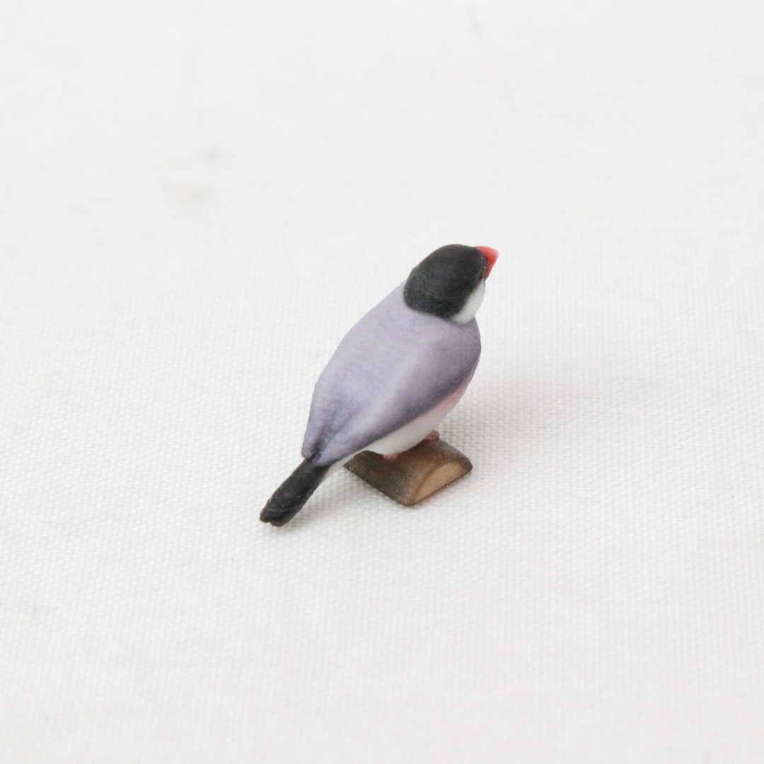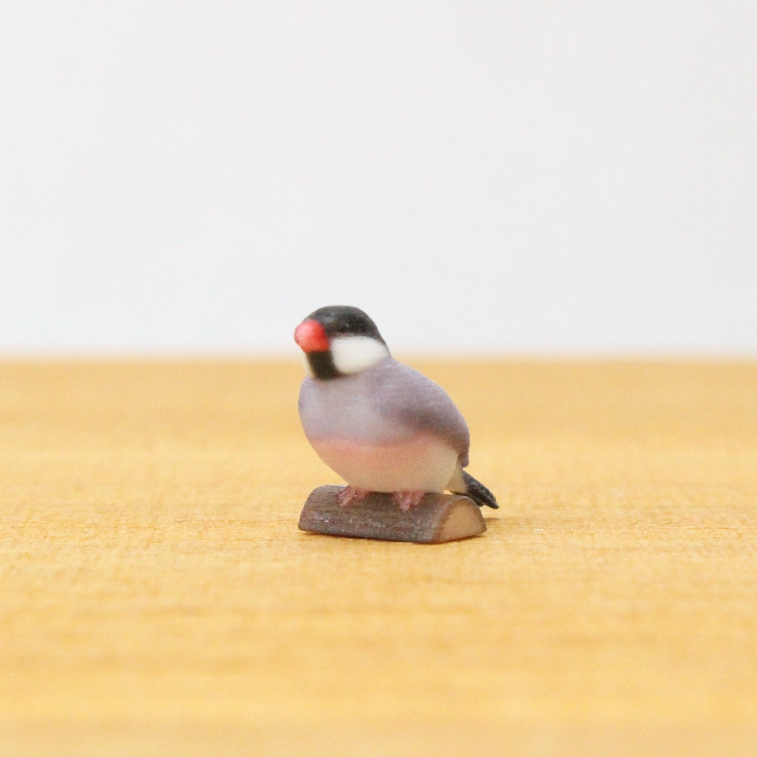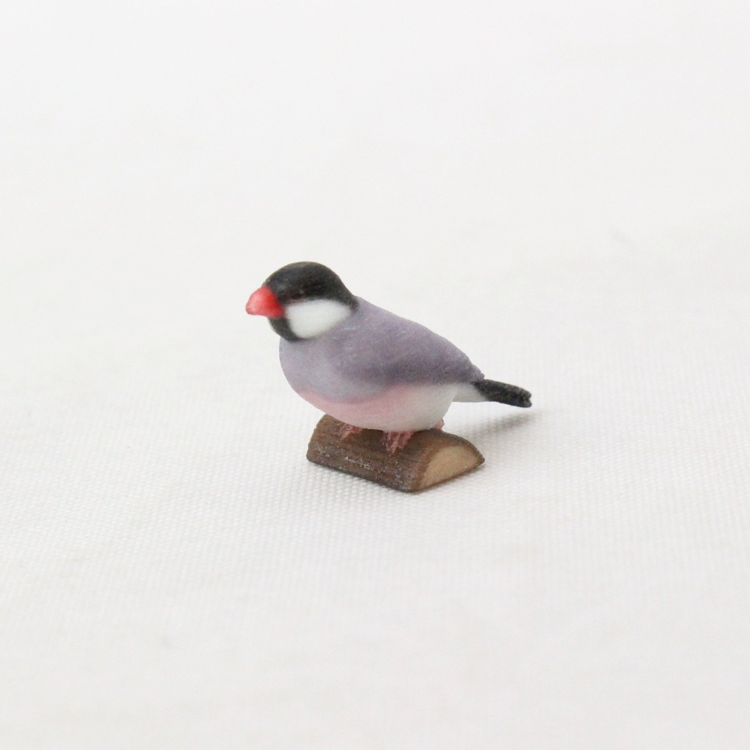 「ノーマル文鳥」と呼ばれる、黒い頭と灰色の羽毛の文鳥をモデルに製作しました。